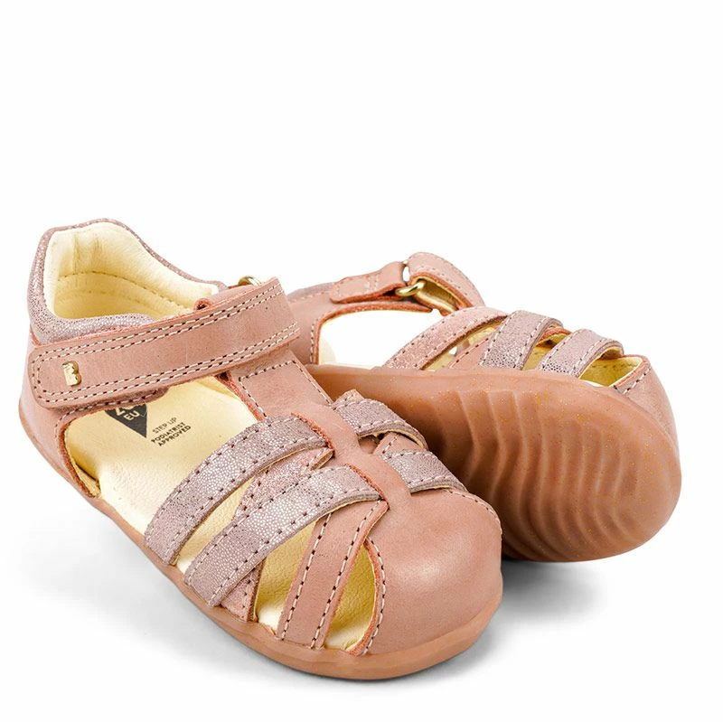 A pretty strappy style sandal from Bobux that is perfect for special occasions but with a closed toe design that is great for everyday.