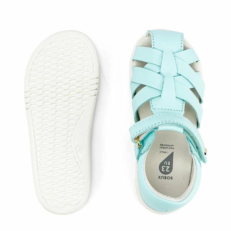 | Features | Made from Quick Dry leather which can be exposed to water without marking and dry fast. Velcro leather strap for adjustability. Triple toe straps for protection. Padded heel for comfort. Hard wearing zero-drop TPR sole provides a good balance between flexibility and durability. 100% leather upper for breathability. Leather lining. On the original Bobux sandal sole unit which is a medium width with nice anatomical toe box but is not as flexible as the shoes. |