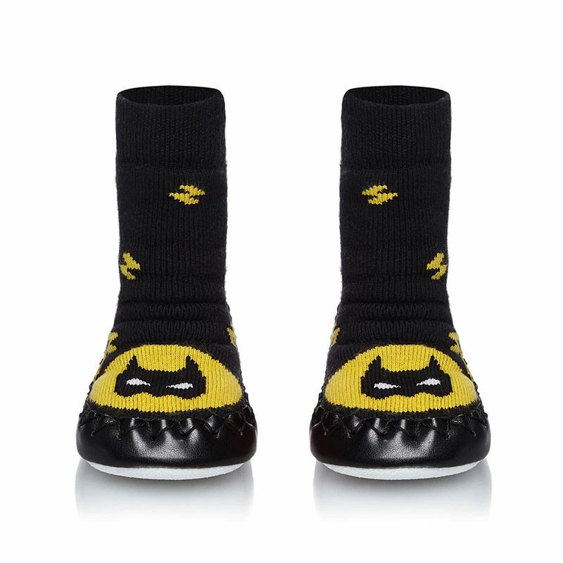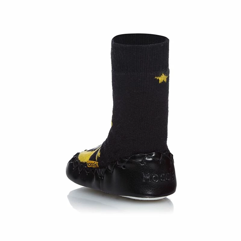 The durable leather moccasin sole provides grip like an indoor shoe while allowing children’s feet to move freely and muscles to develop. Double elastic at the ankle prevents the moccasin from falling off which makes them ideal for nursery or wearing at home.