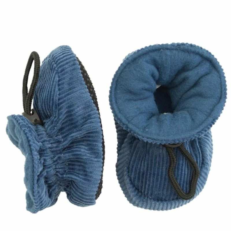 Lovely corduroy slipper style booties from MP Denmark. Perfect for pre and developing walkers. Made from a polyester/cotton blend with a soft lining and the ABS non-slip sole for great grip. An elasticated toggle at the ankle to hold them nice and secure. Perfect to keep little toes warm outside and to potter about in indoors. You will wonder how you ever managed without these booties!