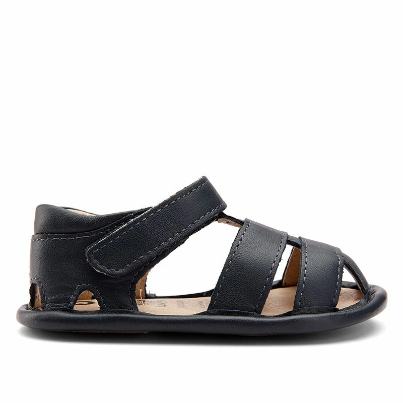 The Sandy Sandal from Old Soles is a classic fishermans sandals suitable for pre-walkers and first steps. On a thin and flexible sole with high quality soft leather upper they offer a great first option for little feet. These sandals offer great protection for little toes with a wider fit, good adjustment around the ankle and a grippy rubber sole for traction.