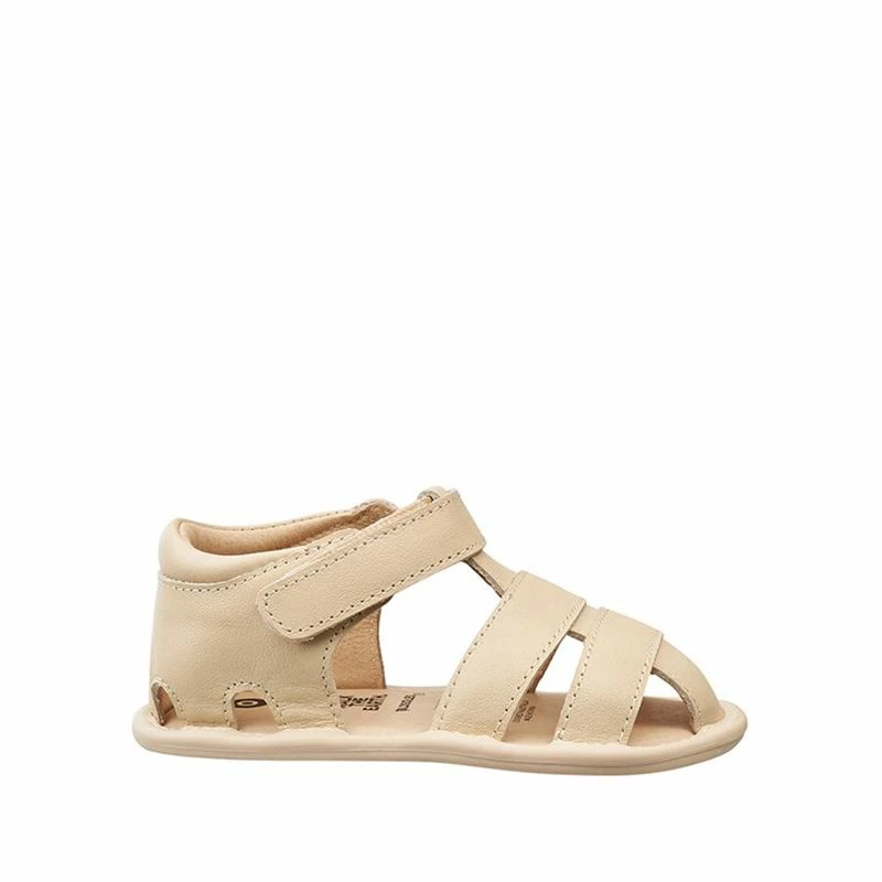 The Waves Sandal from Old Soles is a classic closed toe fishermans sandal suitable for pre-walkers and first steps. On a thin and flexible sole with high quality soft leather upper they are a great first option for little feet. These sandals offer a wider, deeper fit, good adjustment around the ankle and a grippy rubber sole for traction.