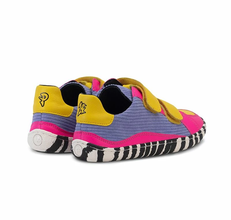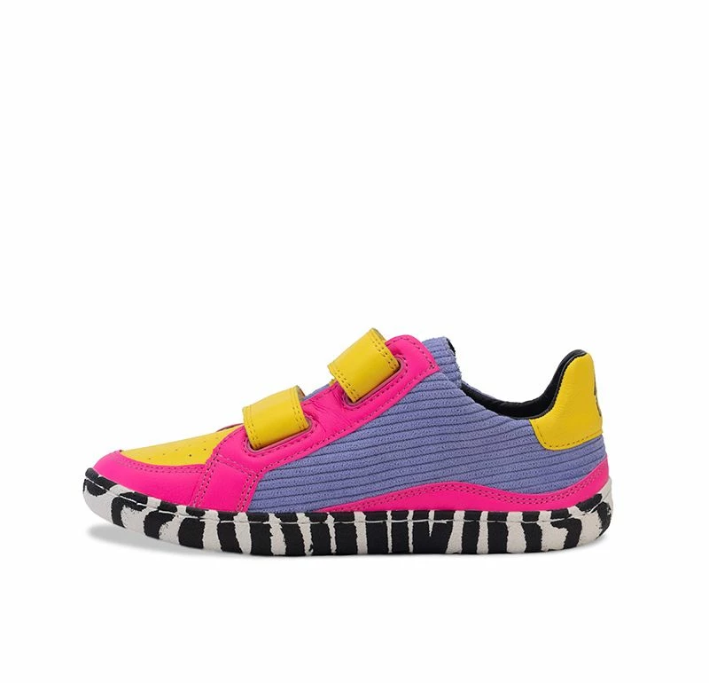 A practical and simple barefoot shoe from Australian brand, PaperKrane in a fun and unique colourway. These shoes have a zero drop 4mm thin sole made of flexible natural rubber. Lightweight and medium width they are made from super soft leather. They include a double velcro fastener for a snug and comfortable fit with a durable stitched sole to increase lifetime.