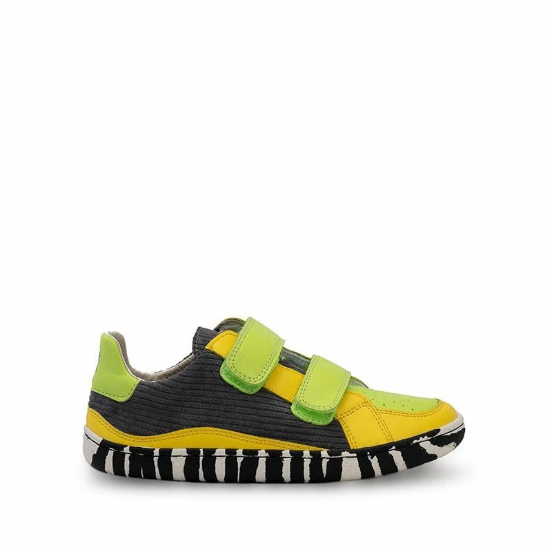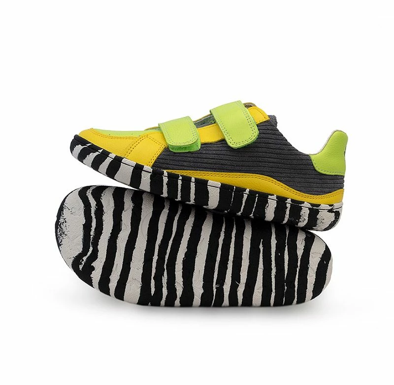 A practical and simple barefoot shoe from Australian brand, PaperKrane in a fun and unique colourway. These shoes have a zero drop 4mm thin sole made of flexible natural rubber. Lightweight and medium width they are made from super soft leather. They include a double velcro fastener for a snug and comfortable fit with a durable stitched sole to increase lifetime.