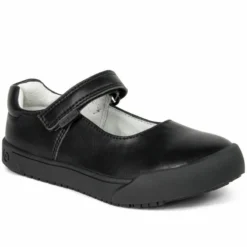 | Product Features | Clarion Upper with leather lining. All natural zero drop rubber sole but with a narrower toe box than other styles. Mary Jane style with easy on and off Velcro strap. Features the Flex Fit System which extends the length of wear with additional and rem |