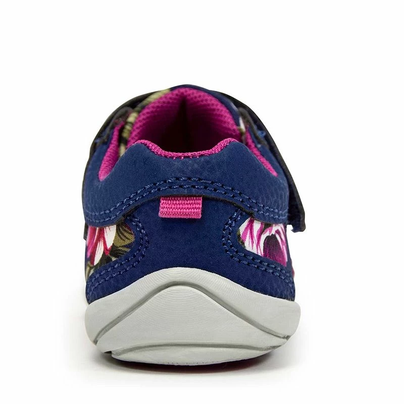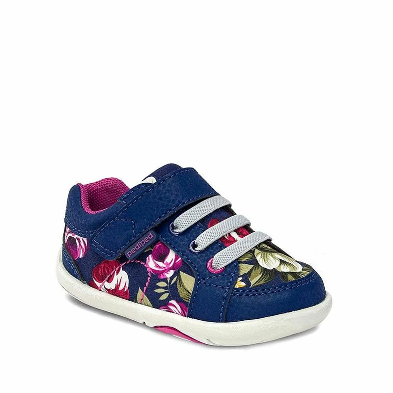 The Pediped Grip n Go range has a lovely flexible sole in a medium width which is ideal for a new and developing walker. The Dani Navy Floral is a vegan friendly shoe in a trainer style with a man-made upper.