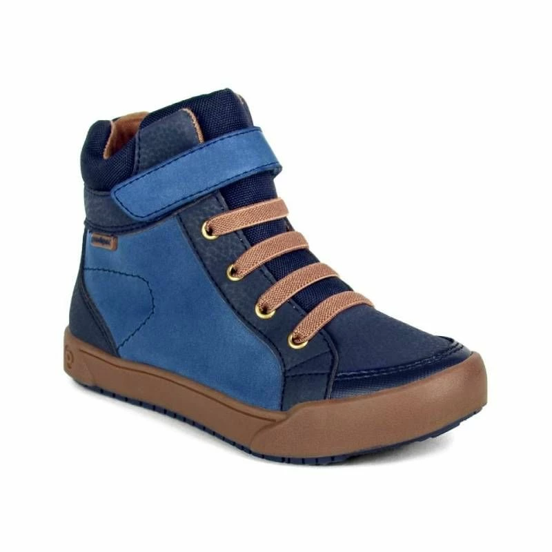 The Logan is a classic style high top from Pediped in a narrow fit. A Velcro ankle strap gives a great fit for narrower feet and ankles. This style is made in a vegan friendly material with a flexible zero drop rubber sole.