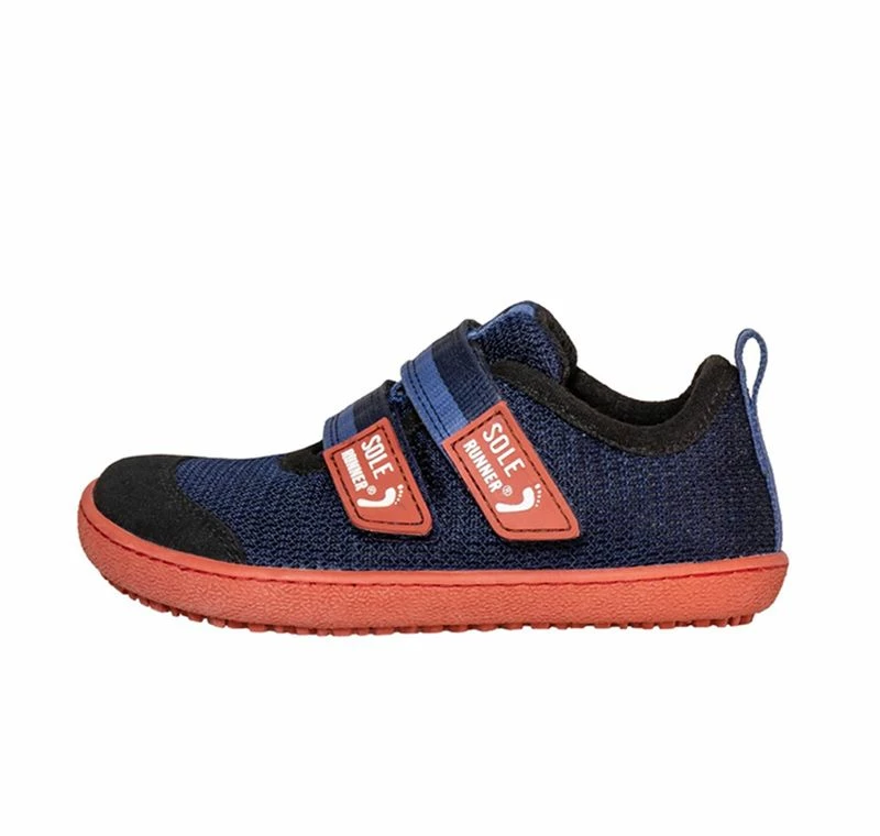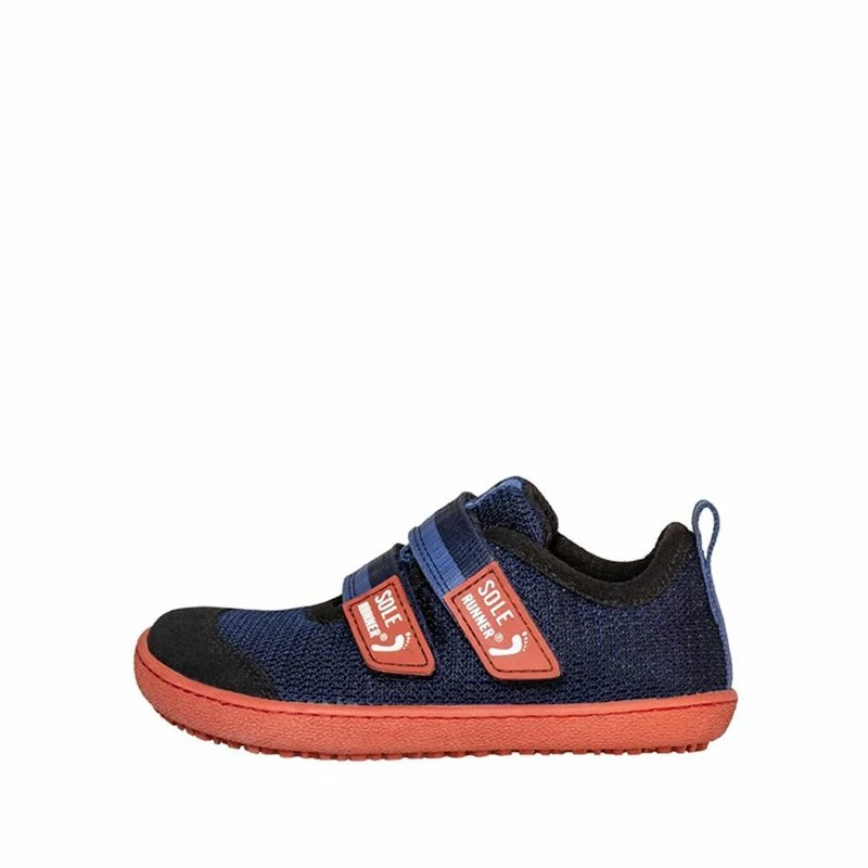 Puck 4 is an updated version of the popular Puck trainer from Sole Runner, a simple and practical kids trainer in a wider fit. The Puck is a vegan style made with a quick drying and water repellent upper. The new version of Puck has an improved toe cap for extra durability. The sole unit is zero-drop and a flexible 6 mm non-marking rubber outsole. A double velcro closure makes these trainers easy to get on and off and gives a great fit for lots of different feet. Please note that whilst the sole of these trainers is zero drop they have an insole with a very slight heel attached. These have not proved easy to detach from the insole so we recommend wearing without the insole or replacing with a thin and flat insole. We measure each shoe without the insole to reflect this. If you do wish to use the shoes with the insole in you will need to adjust for this in the measurements as the insole will reduce the internal measurements by approximately 0.5cm.